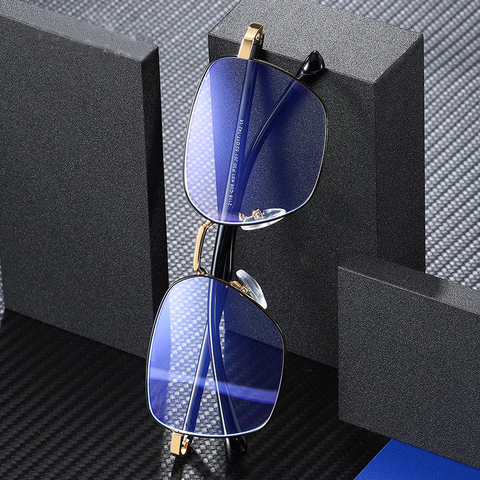 特大のレトロアンチブルーライト合金金属光学フレームメガネ女性2024